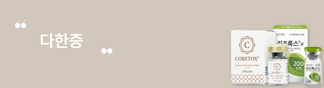 - 다량의 수분을 함유하고 있는 히알루론산과 보톡스를 진피층에 동시에 주사하여 직접적인 보습효과와 함께 피부 탄력 증대, 잔주름 개선, 모공수축의 효과가 뛰어납니다.